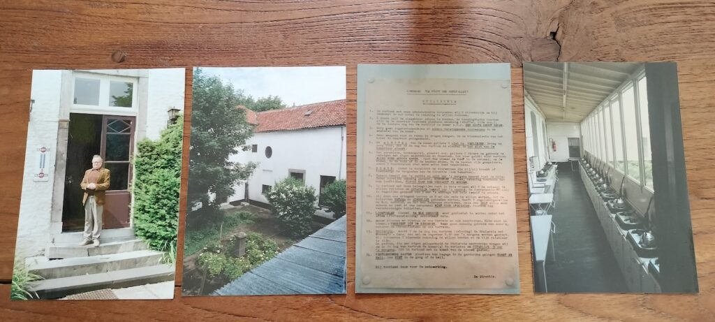 We hadden na aankomst onze bagage in de aankomsthal neergezet en wachtten eigenlijk tot Couwmans ons onze kamers zou wijzen, maar in plaats daarvan gebood hij ons min of meer de ontvangstkamer binnen te gaan. Daar begon hij ons ongevraagd de historie van dit hotel en, in samenhang daarmee, de geschiedenis van zijn familie uit de doeken te doen. De Poort der Geulle-vallei bleek inderdaad een voormalig klooster te zijn.