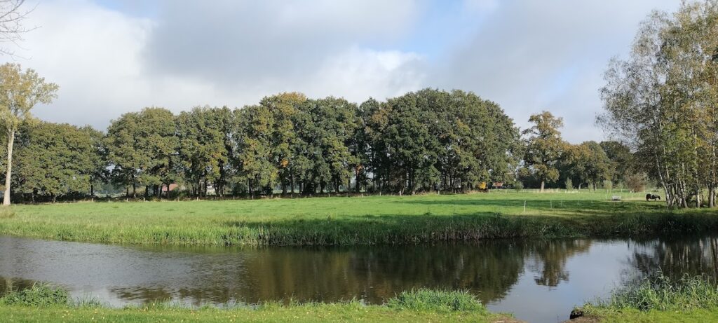Een vriendelijke man, die daar in de buurt zijn even vriendelijke hond uitliet en die om een praatje verlegen leek te zitten, vertelde ons ongevraagd dat de Regge in de vorige eeuw een rechtgetrokken kanaal (en – helaas ook – een open riool) was. Nu was het riviertje, dankzij ingrijpen van de mens, weer een idyllisch meanderend stroompje geworden. En dat zag er prachtig uit, natuurlijk, alleen kon ik me niet aan de gedachte onttrekken: ‘Wat is hier nog echt aan?’